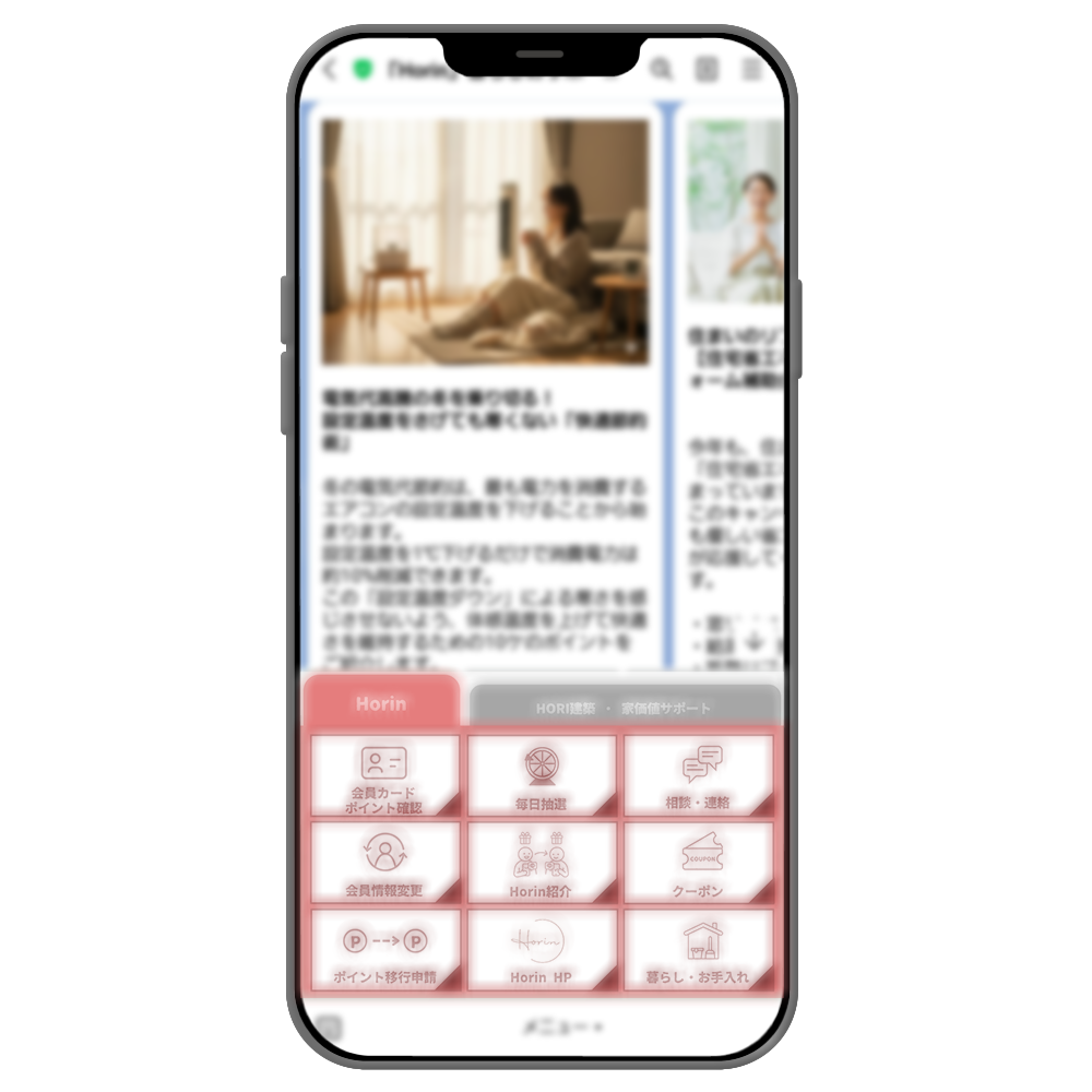 その他、Horinのサービスやホームオーナー様向けのサービスへアクセスしやすくなっております。